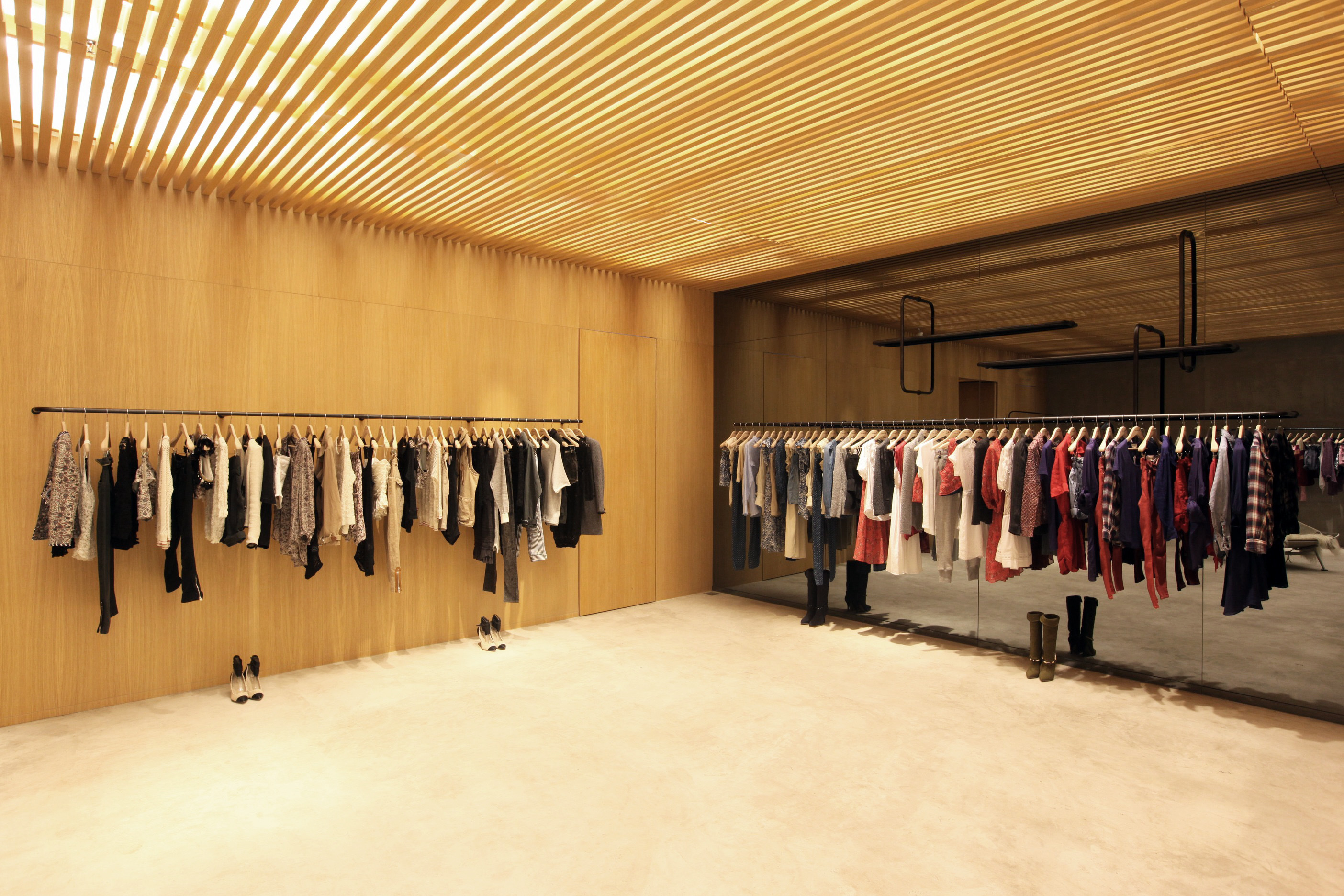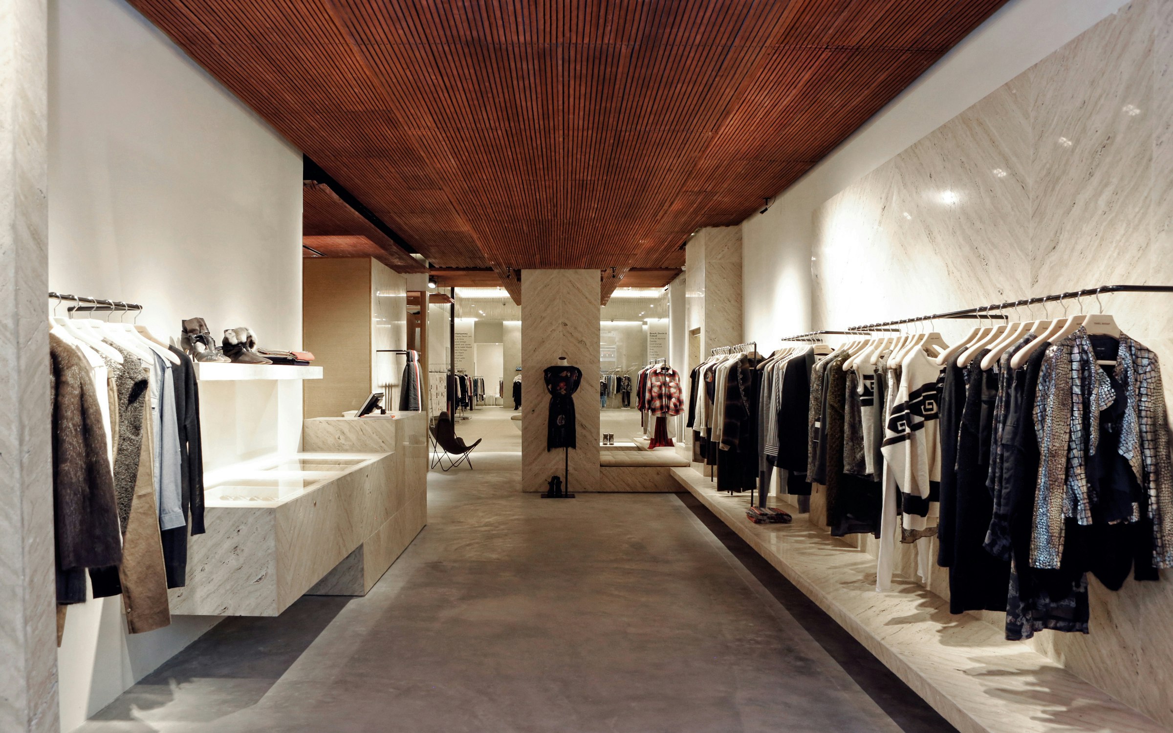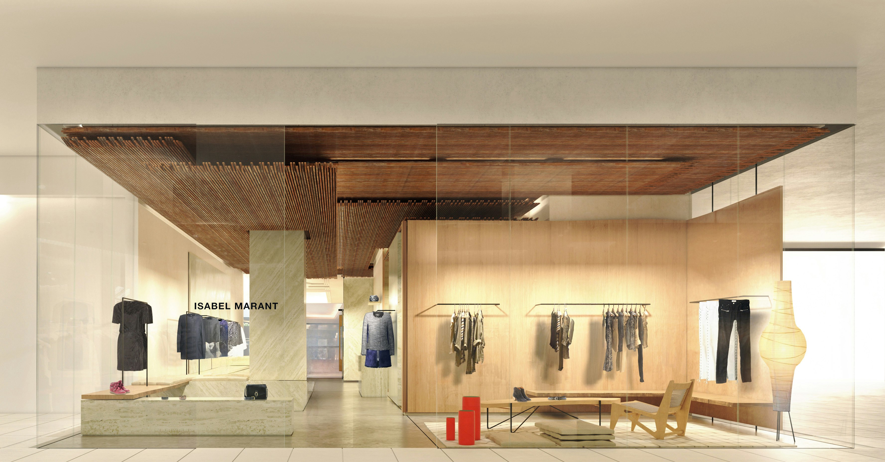 In the heart of Mayfair, Franklin Azzi has designed the Isabel Marant boutique to reflect the brand's image: raw, elegant, and timeless. Travertine, solid oak, and Japanese straw make up a natural palette that celebrates craftsmanship. Lighting effects, custom-made furniture, and a green courtyard create a subtle dialogue between architecture and fashion.