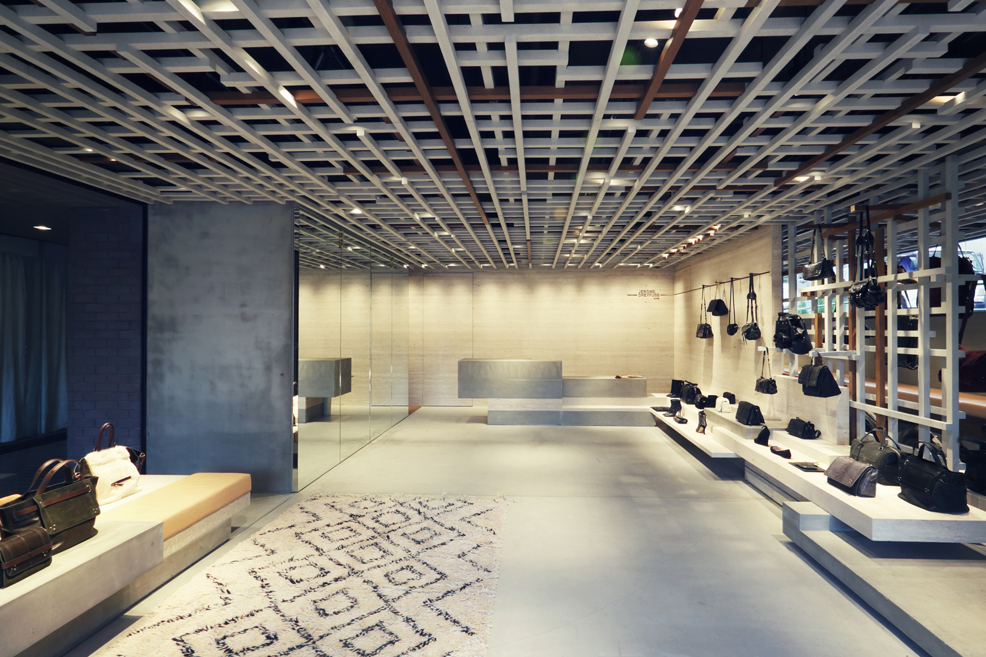 At the corner of Rue des Archives and Rue Sainte-Croix de la Bretonnerie, The Agency, in collaboration with Atelier Franck Durand, has designed John Galliano's first Parisian boutique in a setting that is both discreet and unique. The project fits into the fabric of the Marais district while asserting its own identity. The façade, clad in black lacquered wood and inspired by Victorian codes, dialogues with the surrounding Haussmannian architecture while clearly distinguishing itself from it. Elegant and assertive, it marks the address without revealing it entirely. Inside, the architect has designed a space with multiple influences, conceived as an apartment. The references are varied: vintage carpets and armchairs, poured concrete walls, moulded staff cornices, and mobile linen partitions inspired by Gio Ponti's accordion walls. The materials are rich and carefully chosen: enamelled lava stone, brass, stained oak, coloured leathers, and deep carpets. Every detail reveals the work of skilled craftsmen and affirms a sober elegance. The spatial organisation optimises the initially constrained space. Natural lighting is reworked through openings and the addition of reinforced glass. Three exposed cast iron posts punctuate the space. Circulation is clear, areas are well defined, and uses are modular thanks to large sliding partitions. This project marks an evolution in Franklin Azzi's work, who explores a more expressive palette without compromising on rigour. The result is a sophisticated yet accessible boutique, reflecting the revival of the Galliano brand.
