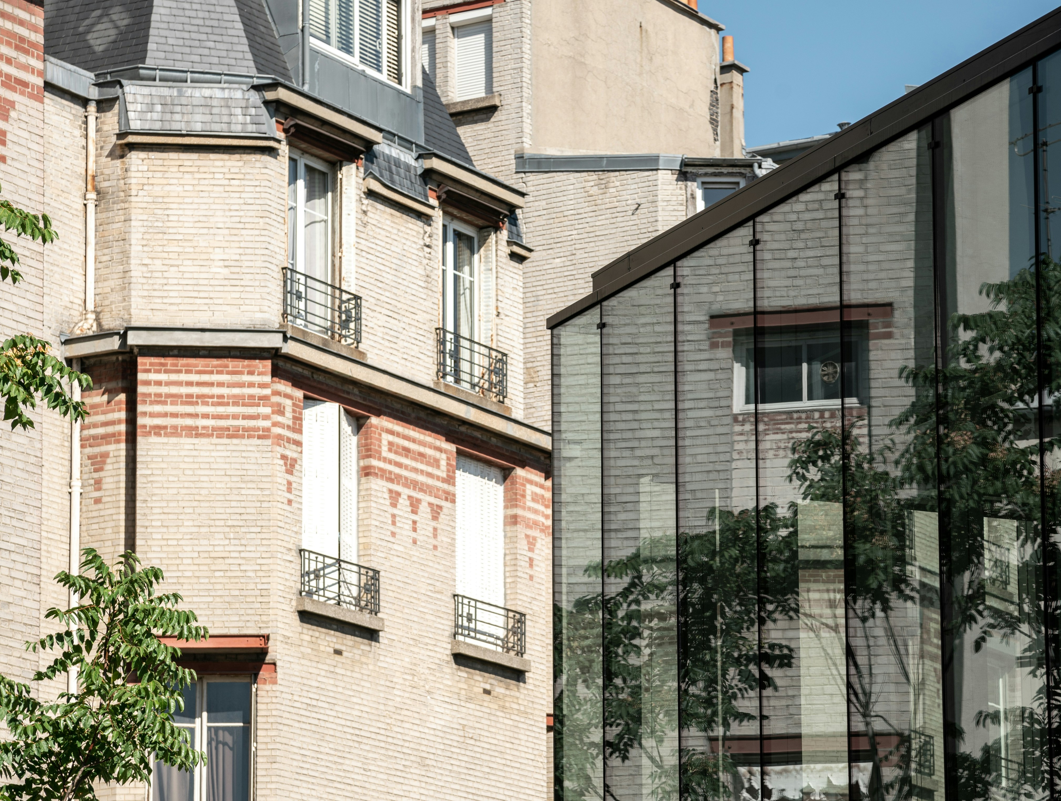 Structured on several levels, the ground floor connects the entrances, which are protected by lightweight structures that promote natural light and ventilation. The glass-fronted reception hall, located at the corner of Rue Paul Meurice and the greenway, emphasizes the project's openness to the public space, while the modular superstructure platforms, extended by accessible terraces, provide workspaces, relaxation areas, and meeting rooms. At the highest point, a panoramic cafeteria is located on the top floor, offering a meeting place that opens onto the surrounding urban landscape.